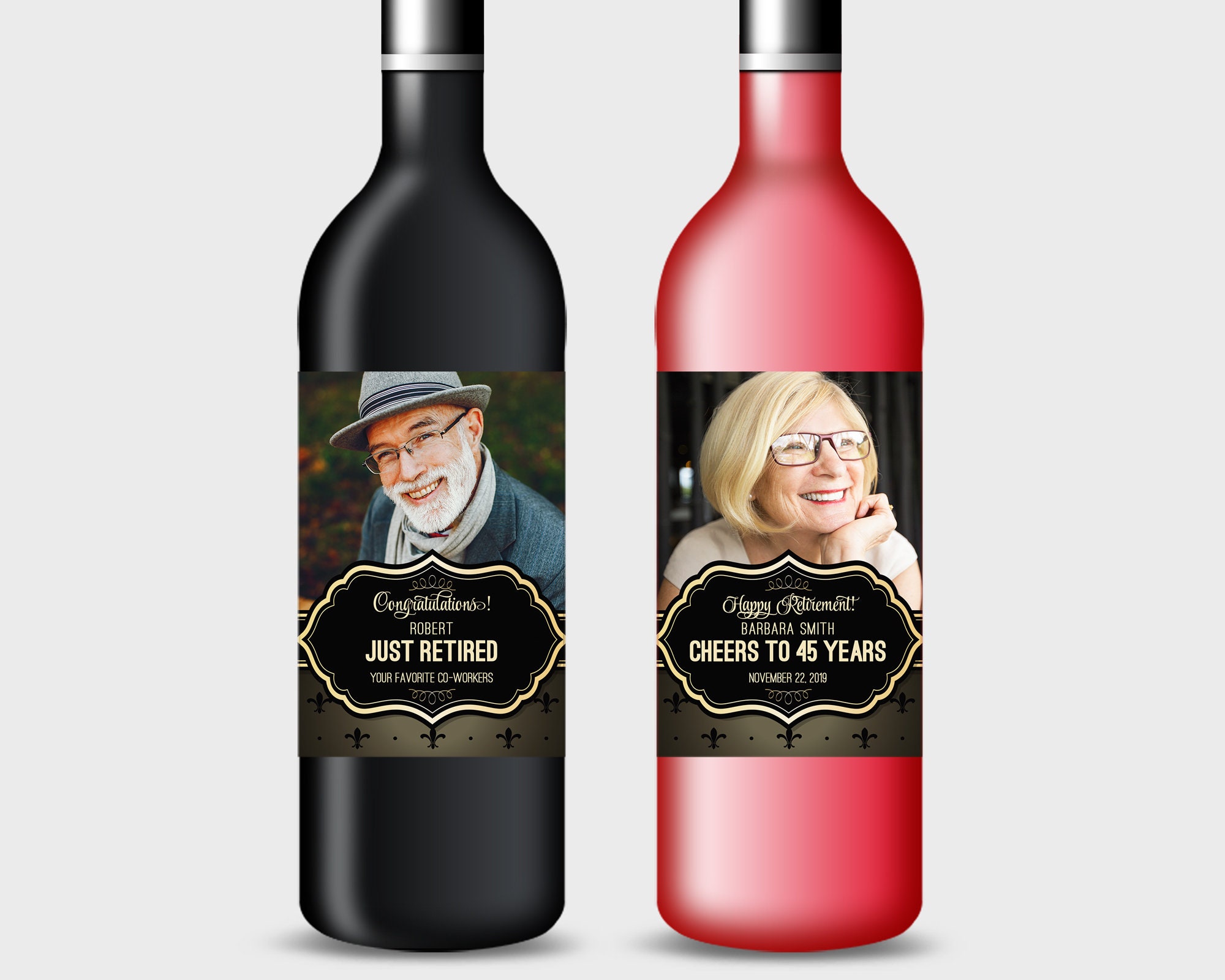 Personalized wine bottle labels for retirement