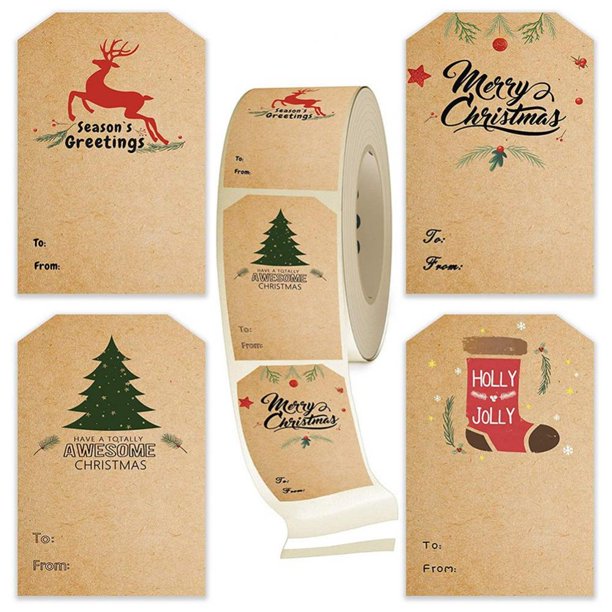 5 Types for Choice Christmas Decor Kraft Paper Stickers 500pcs Labels Per Roll Gift Tags Labeling Container Packaging Mark DIY Instruction Sticker | ...