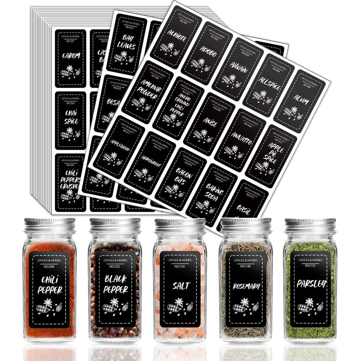 225 PCS Spice Jar Labels, Does't Include Jars,184 Preprinted 41 Extra Write-On Labels for DIY, Waterproof, Oil Resistant, No Residue Herb Seasoning ...